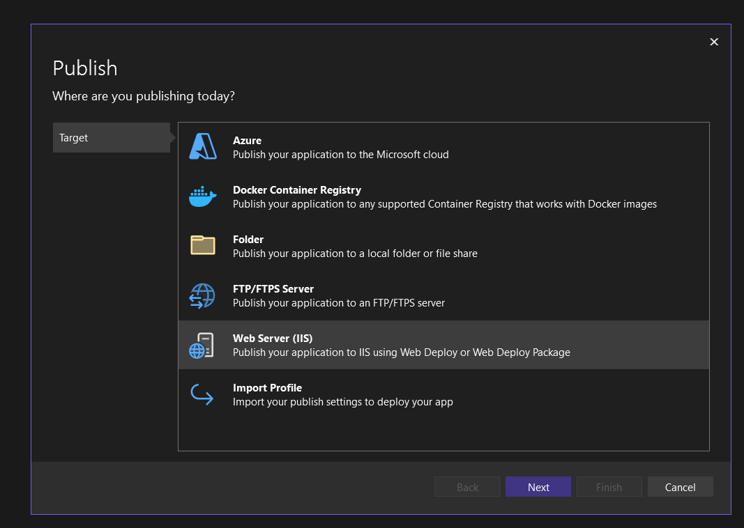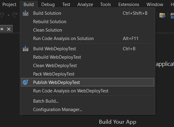 When you're ready to publish your application, you can select Build from the menu in Visual Studio, followed by Publish.