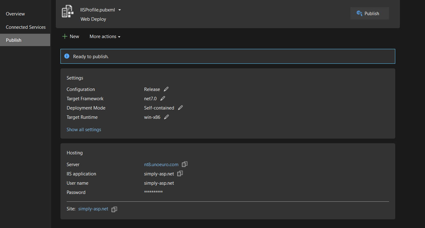 This guide will help you to deploy .NET app using versions not installed on the server, via Self-contained Deployment.