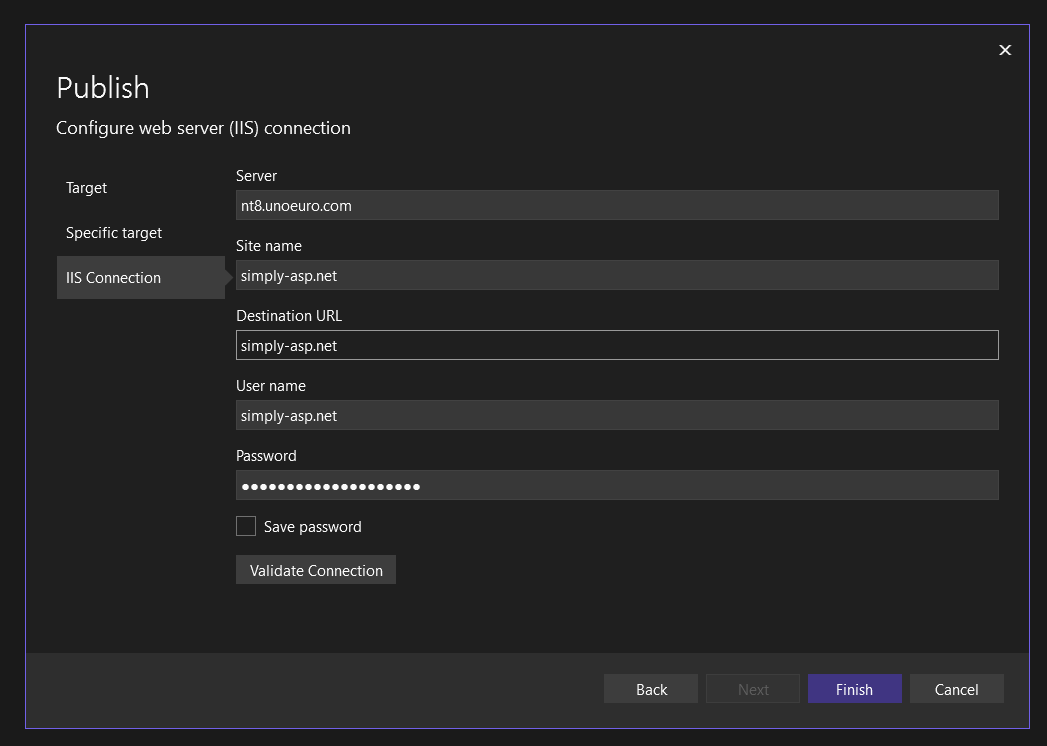 You can then upload the self-contained build of your site to your webspace using regular FTP tools, the deployable webapp is in your-project-folder/bin/Release/netcoreappX.X/win-x86/publish/ - Note everything in this folder must be uploaded to the webspace in order for the app to work online.