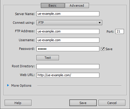 The following screen appears in which you need to fill in your FTP information as they appear in your creation email.
