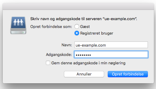 User name is the domain name of the web site you connect to. If your webhotel has the domain homepage.dk, the username will be homepage.dk for example.