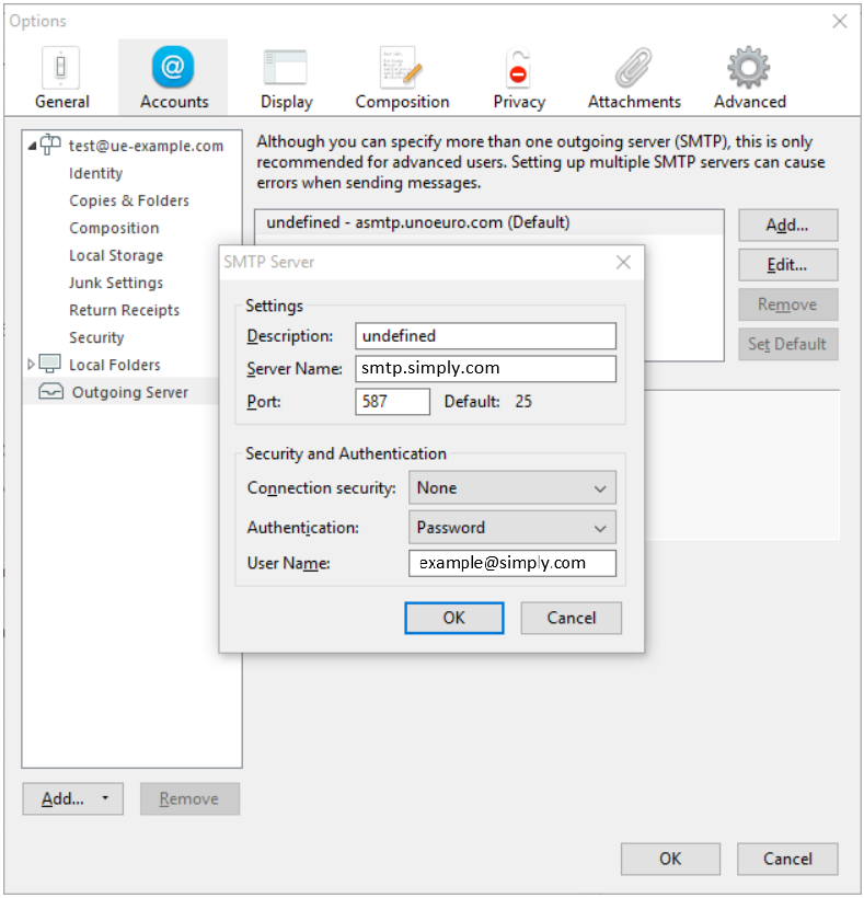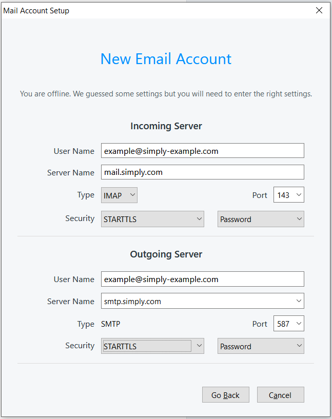 IMPORTANT: The incoming server must be mail.simply.com