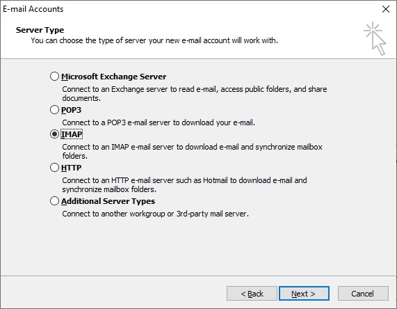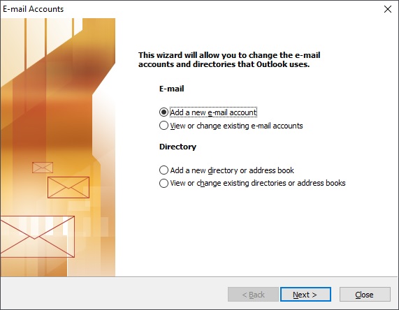 Click on the tools tab and select E-mail Accounts. Select Add a new e-mail account and click on next.