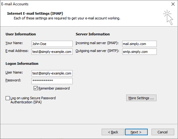 IMPORTANT: The incoming server must be mail.simply.com
