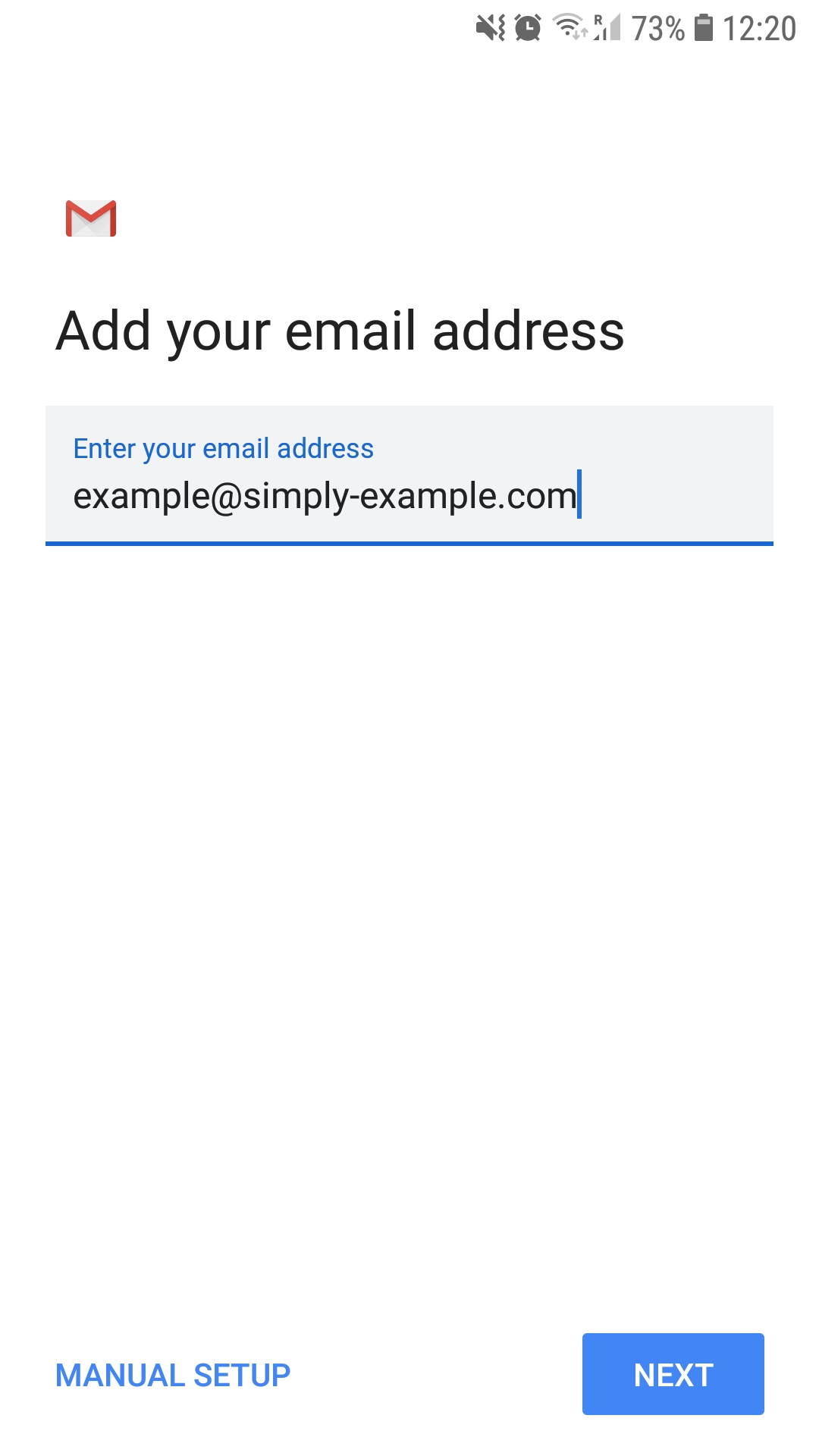 4. Specify the mail account you would like to setup in the app and press "MANUAL SETUP".