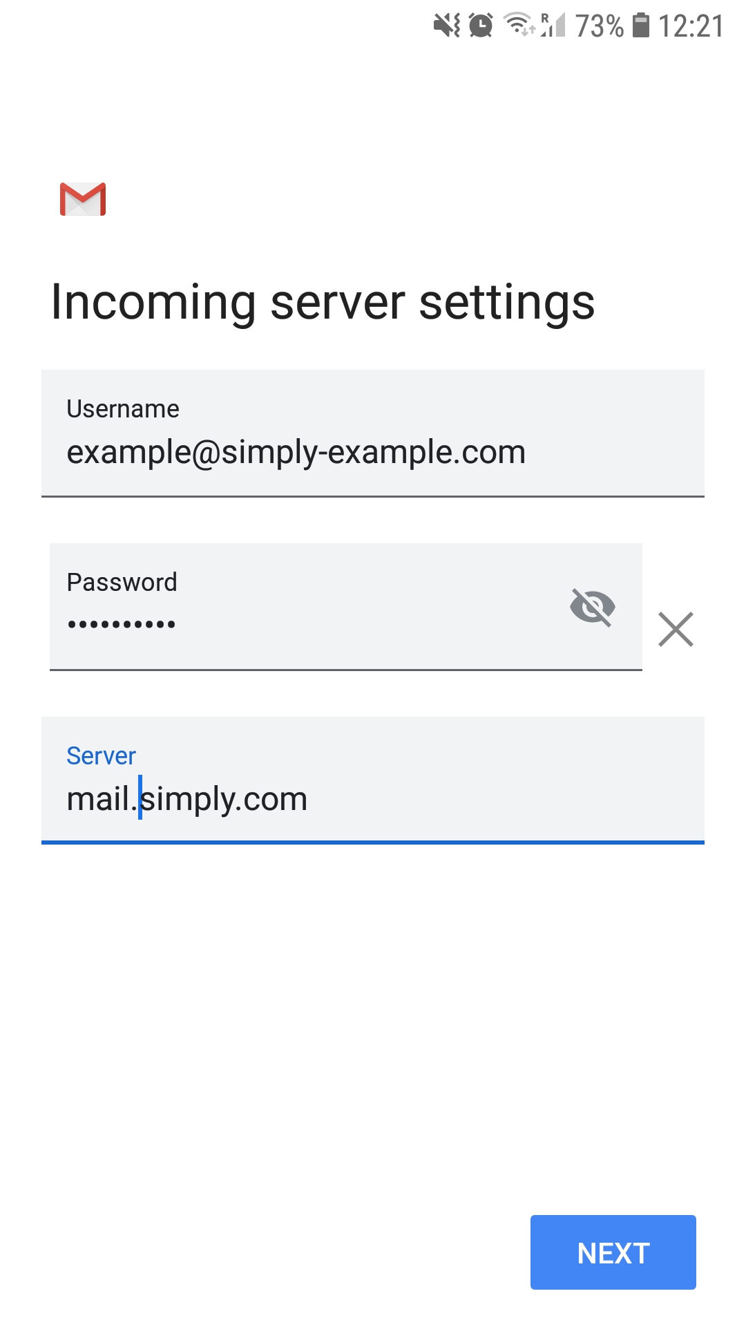 7. Correct the text in the "Server"-column to mail.simply.com.