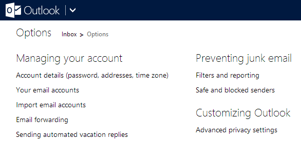 1. Below "Options" choose "Your email accounts".