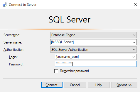You will find username, password and MSSQL server in our creation email.