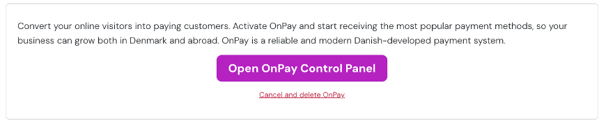 If you are not logged in already, go to the Simply.com control panel and from the Payment gateway menu, open OnPay Control Panel (you can do this in another browser window or tab).